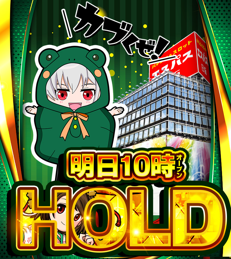 8の日はヤマサ機種に力が入る傾向アリ! また、ポスターには大きく「HOLD」と書かれ、文字の中に7の日の象徴である「寿 舞歌」も描かれており、前日の7の日の据え置きに期待できる1日となります!
