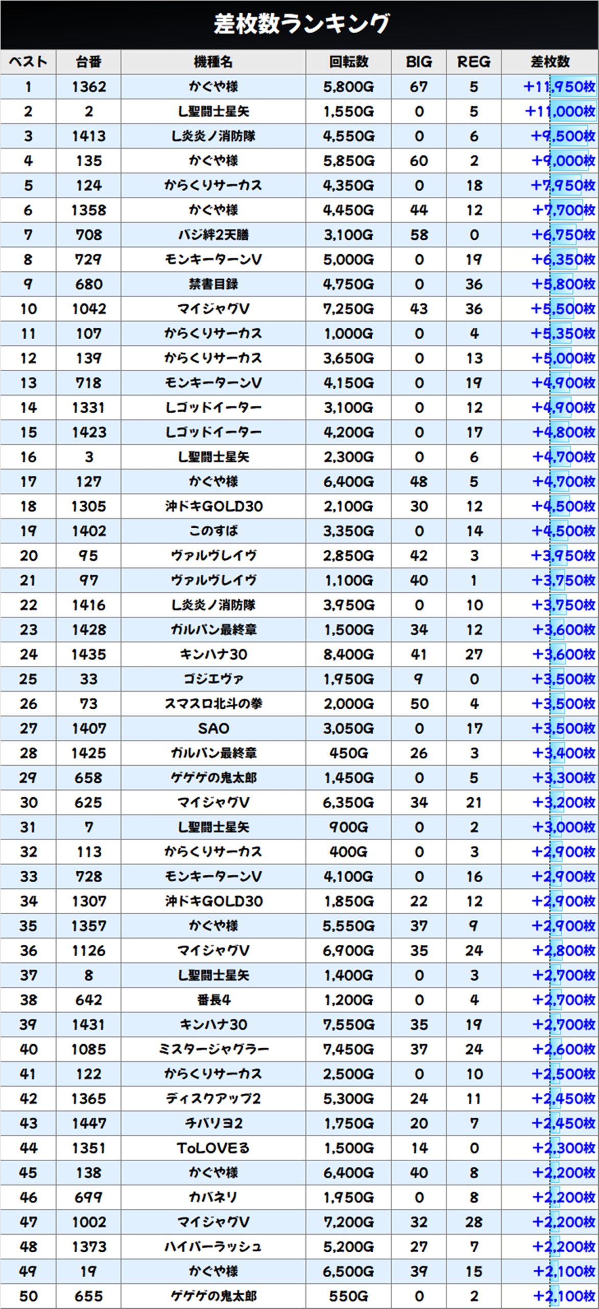 差枚数ランキングと島図をチェック!