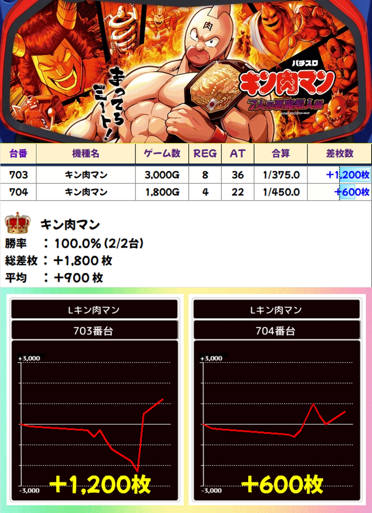 ハイパーラッシュと同じくヤマサ系のキン肉マンも2台ともプラスとなりました。少々打ち込みが弱かった傾向があったようですが、こちらも全台系濃厚だったと思われます!