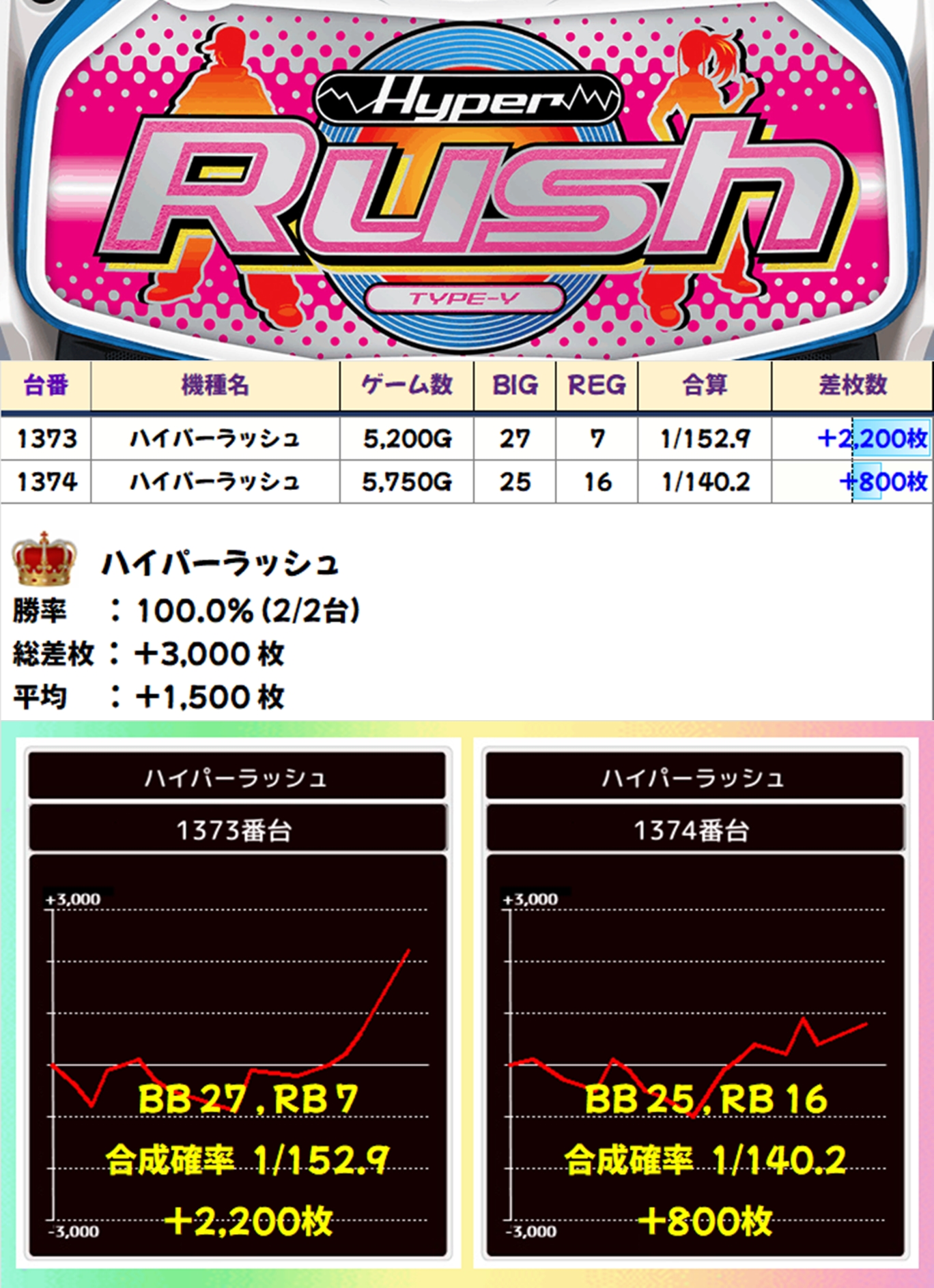 ヤマサ系のハイパーラッシュは2台ともがプラスとなり、こちらは全台系濃厚だったと思います!