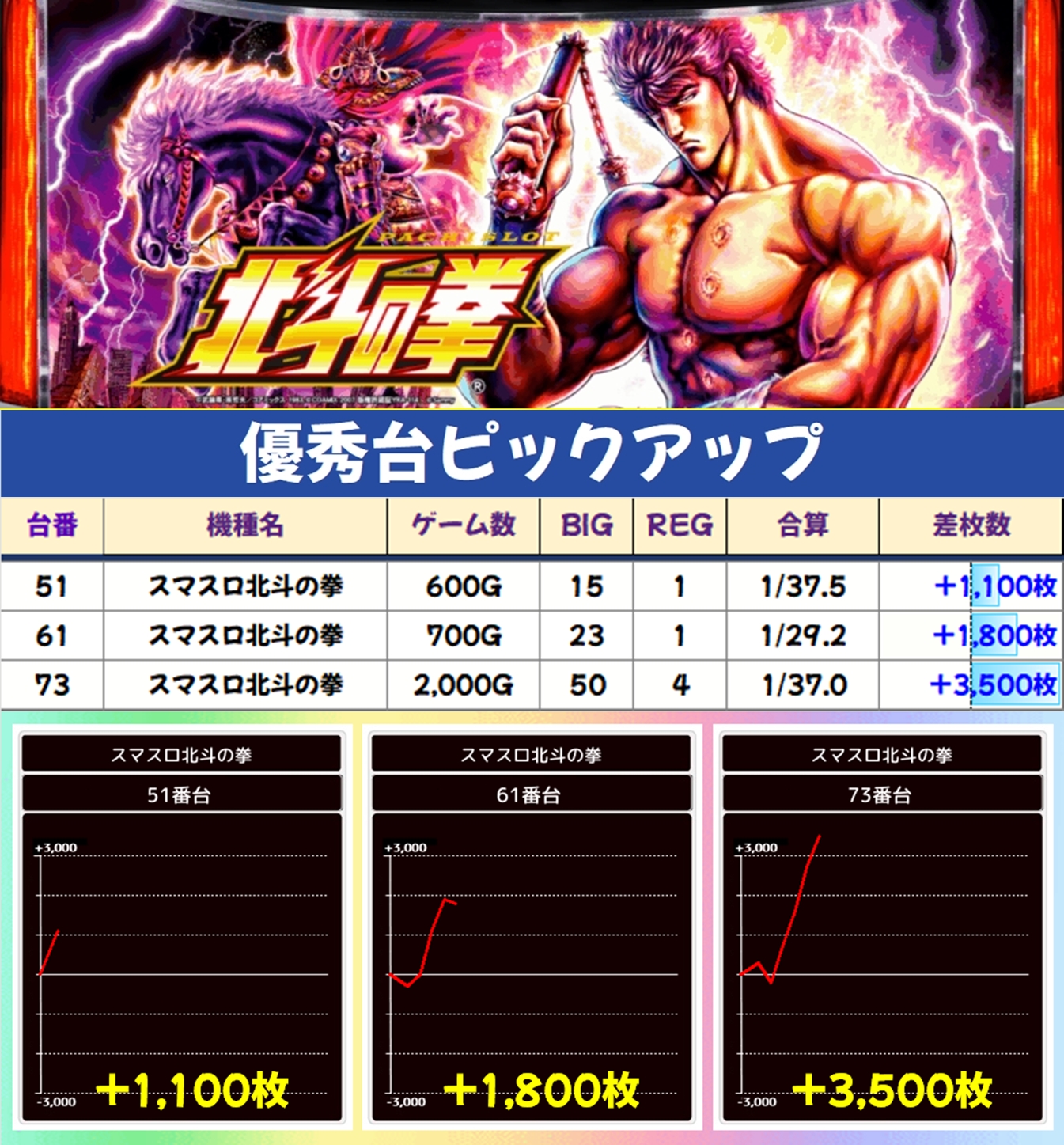 スマスロ北斗からは+3,500枚の出玉を確認!