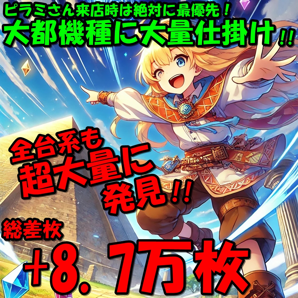 ピラミさん来店=絶対大都押し!過去傾向から間違いなく大都機種は高配分になっているので、大注目です!