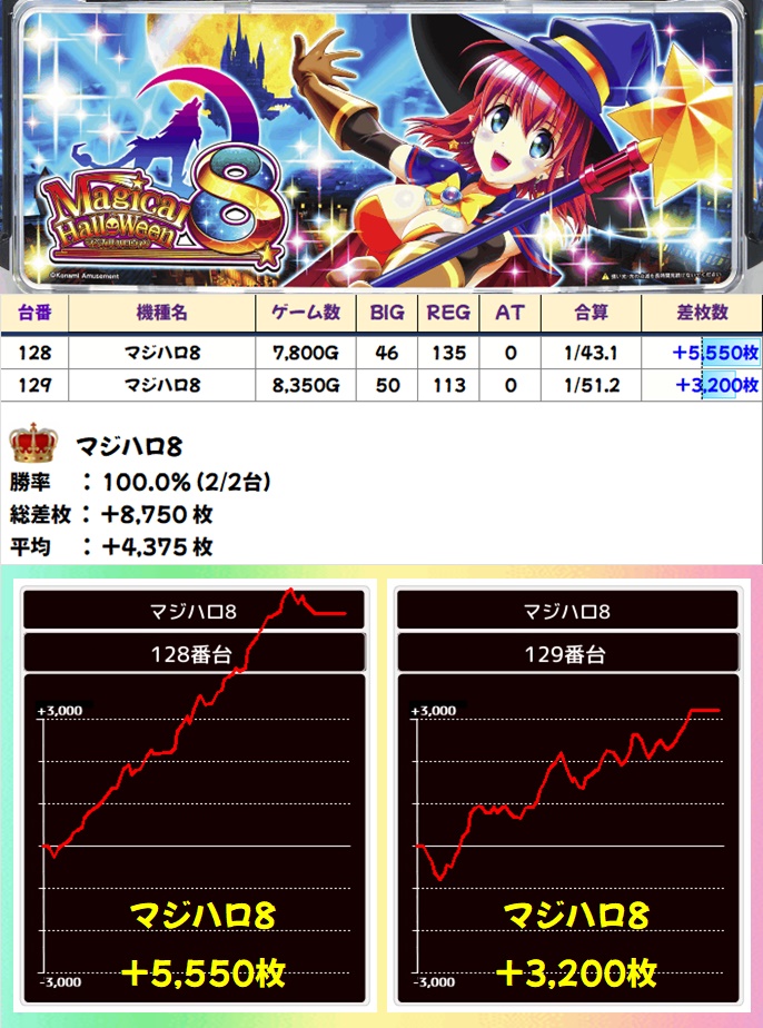 続いてはマジハロ8!こちらも2台とも綺麗な右肩上がりで見事な快勝!タイトルのナンバリングが8だから、こちらも仕掛け対象になりやすいかも!?