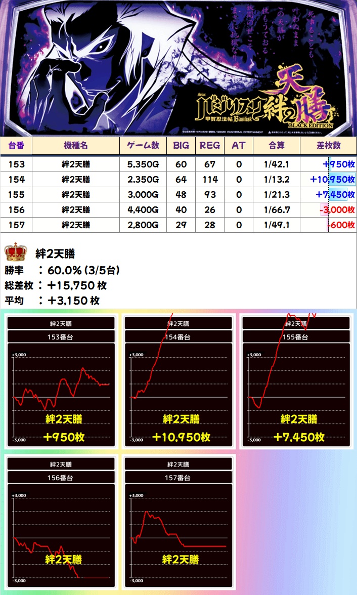 まずは絆2天膳から!万枚オーバーも飛び出し、勝率もニブイチ以上の好結果に!こちらは塊での仕掛けだったかも!?
