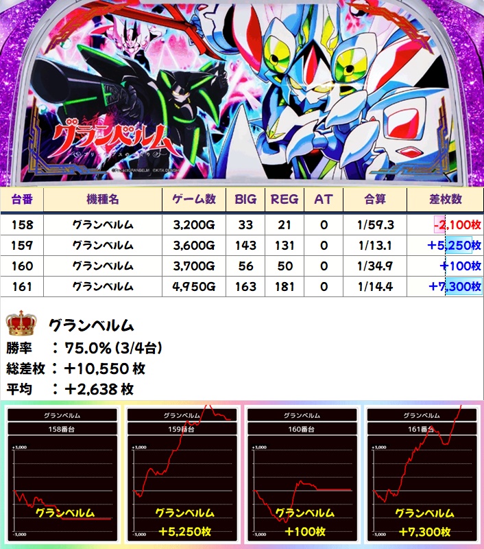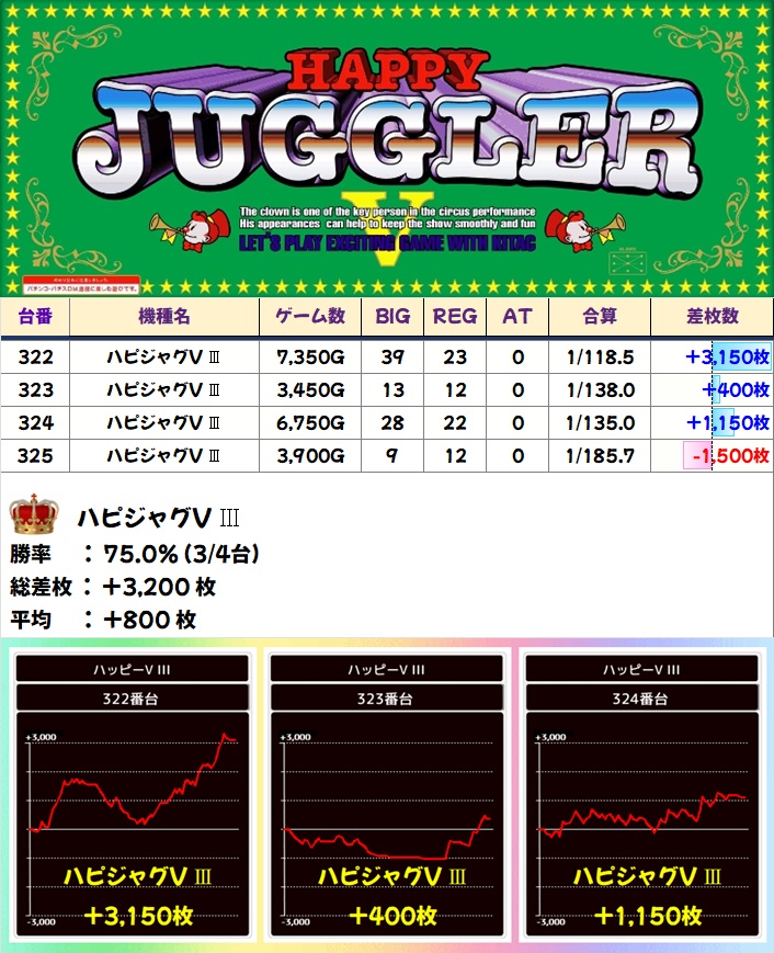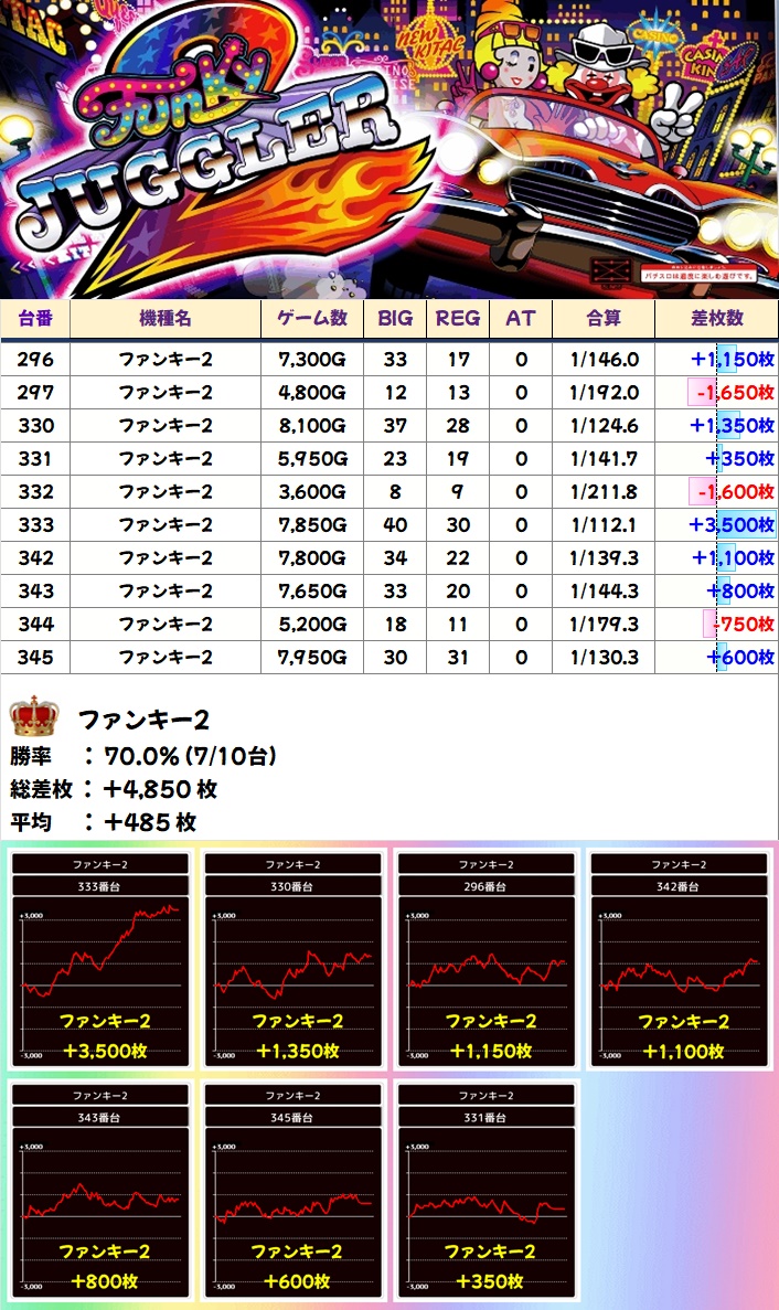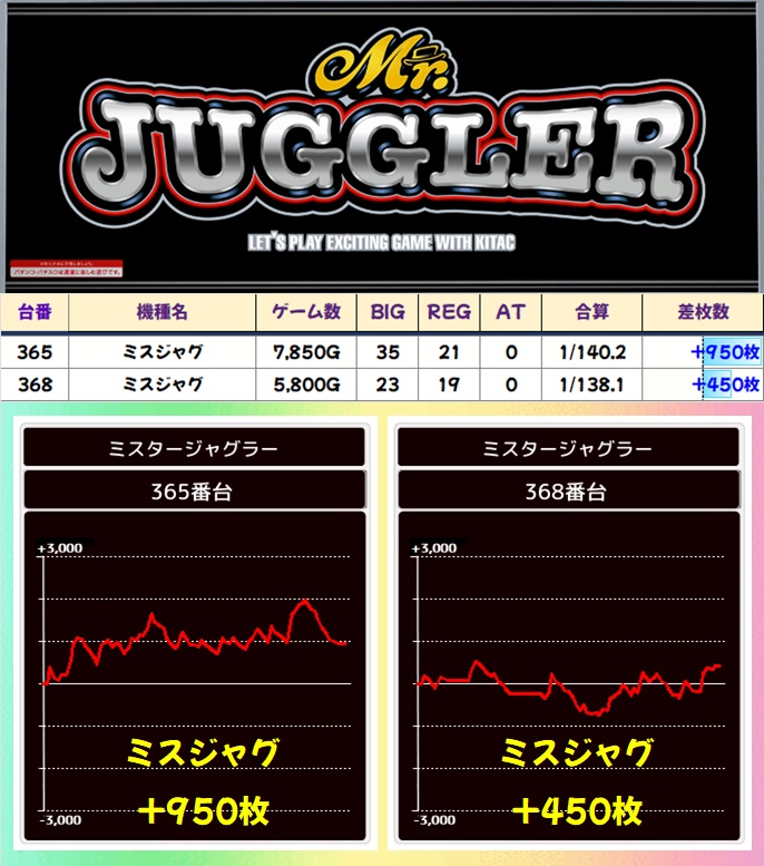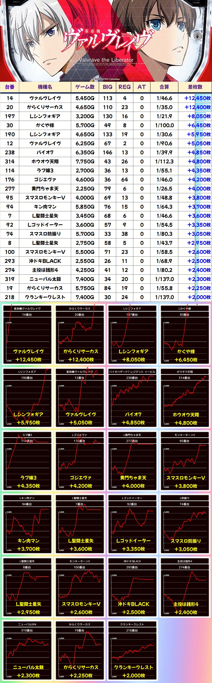 ジャグは全体で+107枚としっかりとプラスに! 今回も全機種から多数の優秀台が確認できました!