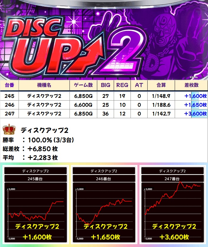 🌈ディスクアップ2(3台)【平均+2283枚】