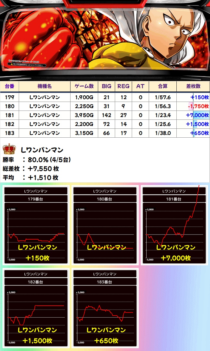 🌈Lワンパンマン(5台)【平均+1510枚】