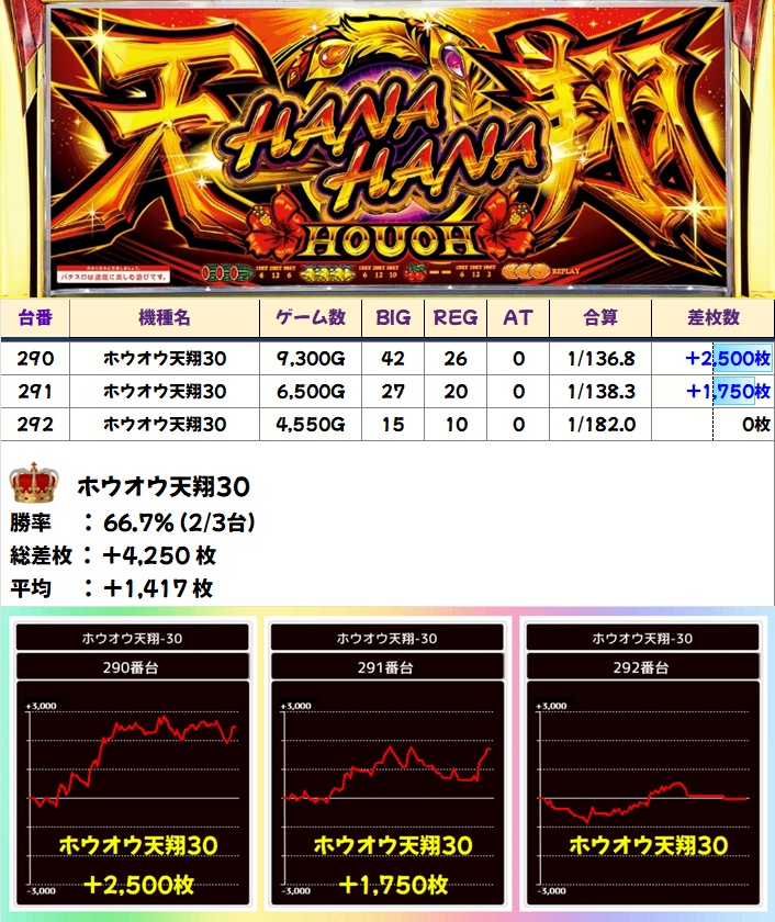 🌈ホウオウ天翔30(3台)【平均+1417枚】
