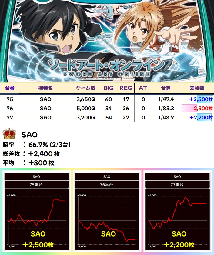 SAOからは2/3でプラスとなりましたが、マイナス台の打ち込みを考えると、こちらも全台系だった可能性大!?