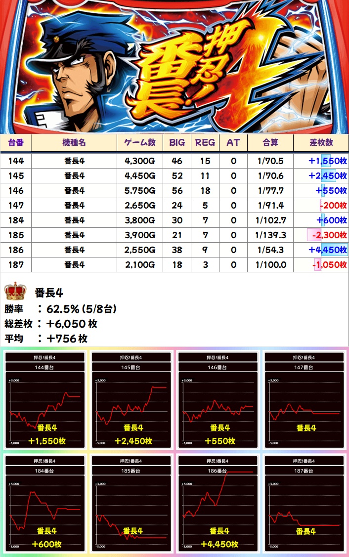 番長4からもしっかりとニブイチ以上の好結果に!やはりピラミさん=大都機種は絶対に最優先です!