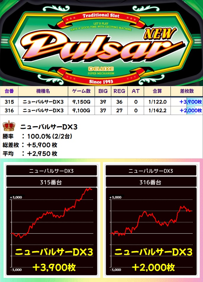 🌈ニューパルサーDX3(2台)【平均+2950枚】