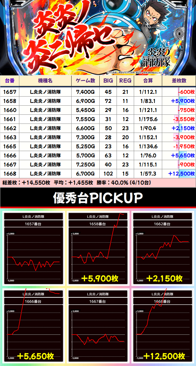 1/2系:スマスロ炎炎 平均+1455枚