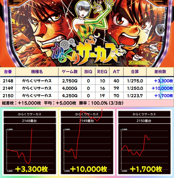 +5000枚以上の大幅プラス台も確認でき、準新台の「Re:ゼロ2」からは+13200枚の万枚オーバー台が出現していました!
