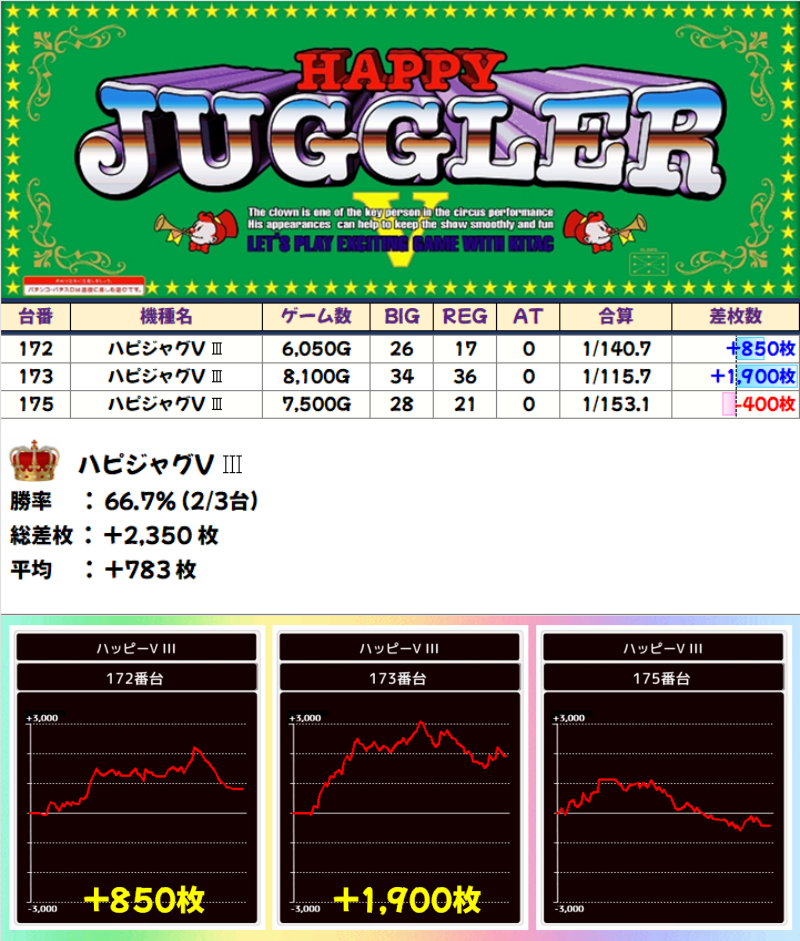 【全台系濃厚】ハッピージャグラーVⅢ(2/3台)|平均+783枚