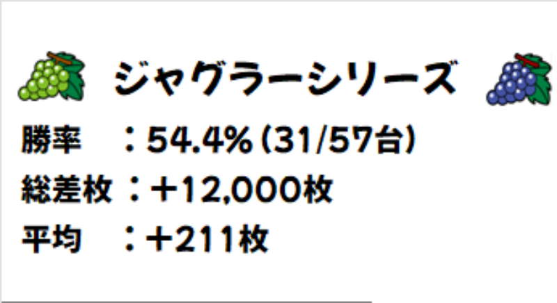 【高ベース】ジャグラーシリーズ(31/57台)|平均+211枚