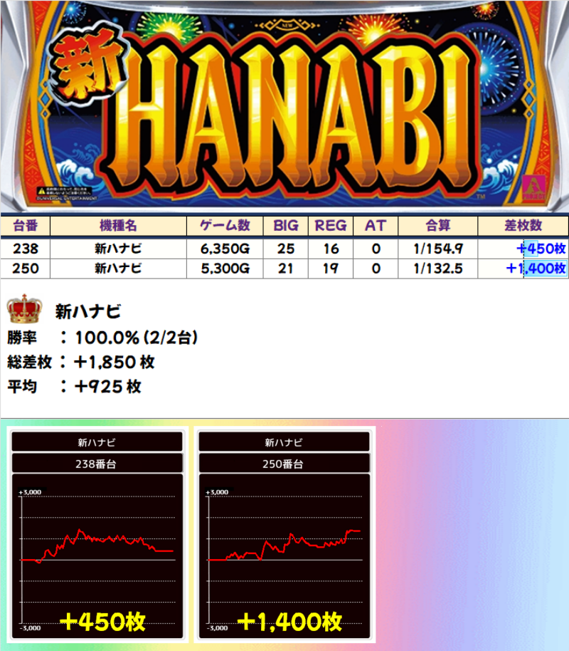 【高配分】新ハナビ(2/2台)|平均+925枚