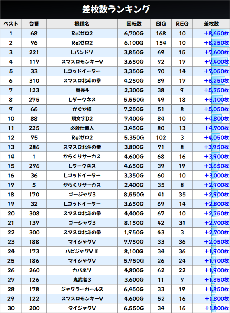差枚数ランキング