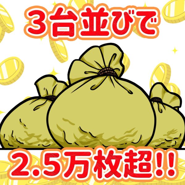 結果は平均差枚+1550枚で3台中2台がプラス差枚。+4450枚の爆発台も出現しましたが、全台フル稼働していればもっと盛り上がっていたでしょうね。
