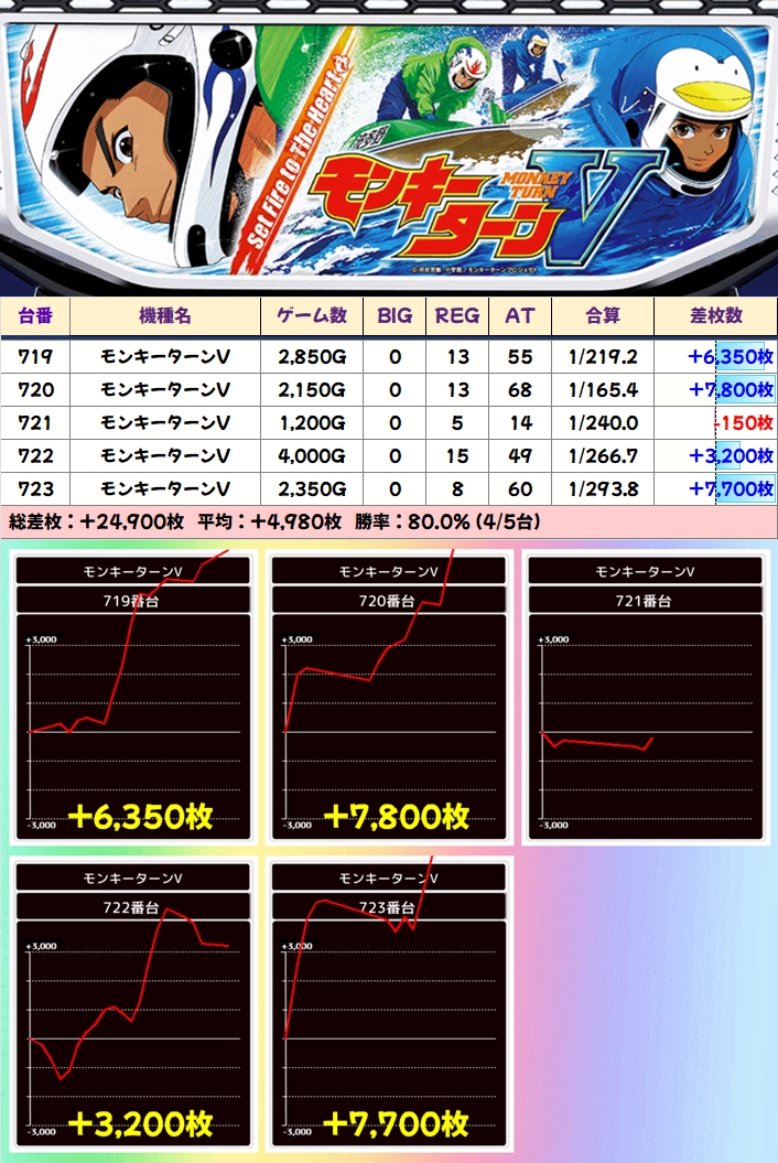 今回は「モンキーターンV」に並び仕掛けがありましたが、その他にも優秀台を多数確認することができました!