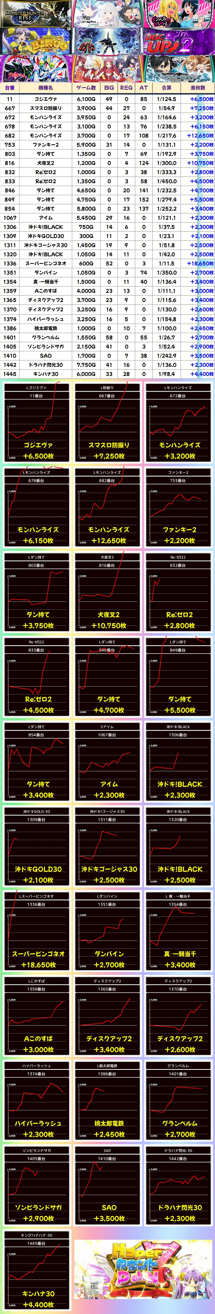 下記に+1000枚以上を記録した台をピックアップしてみました!