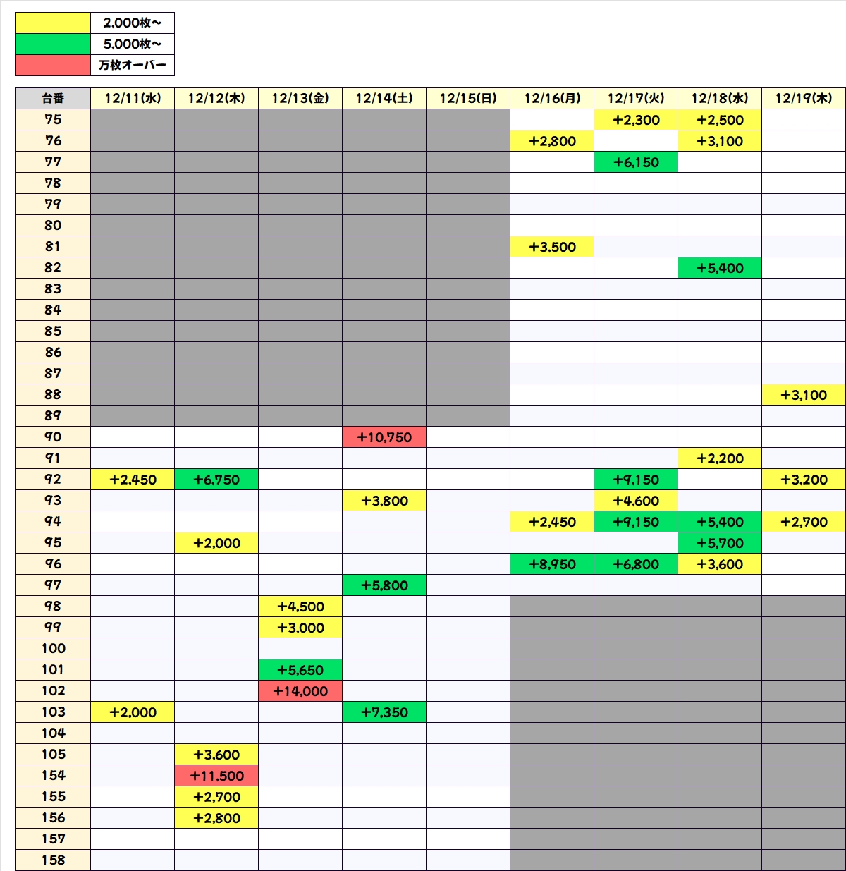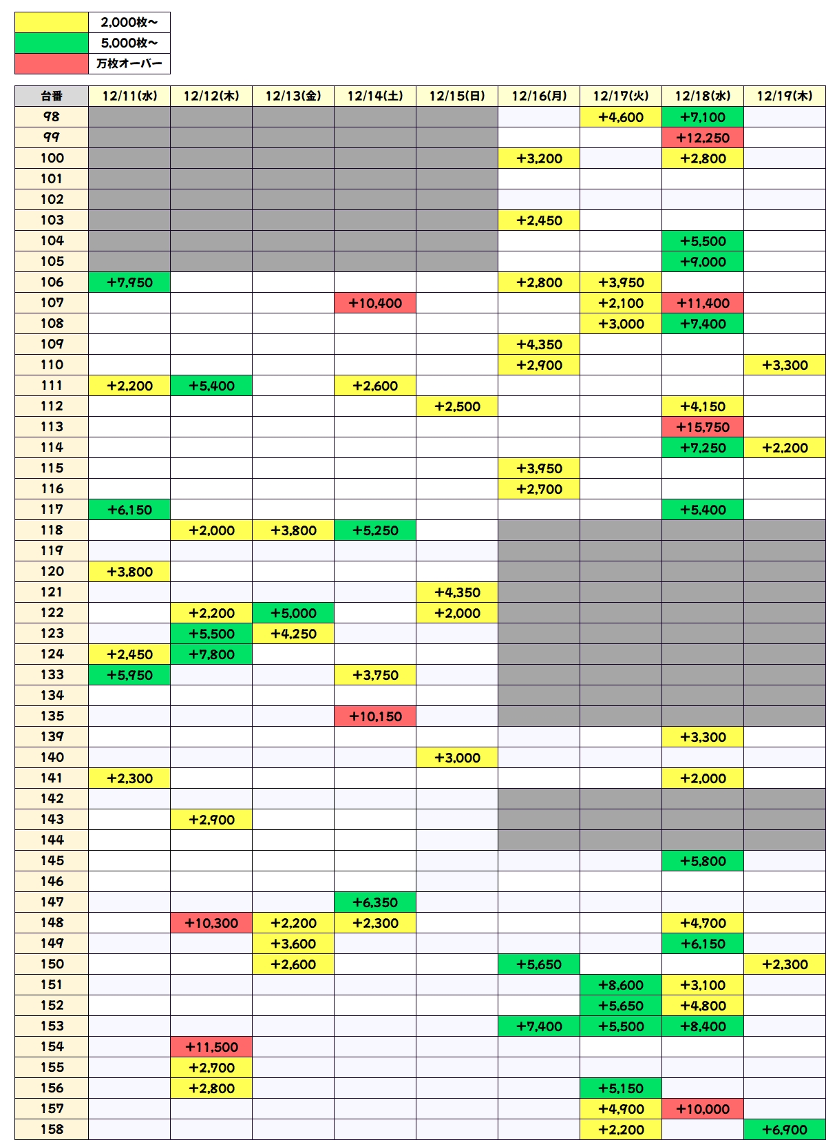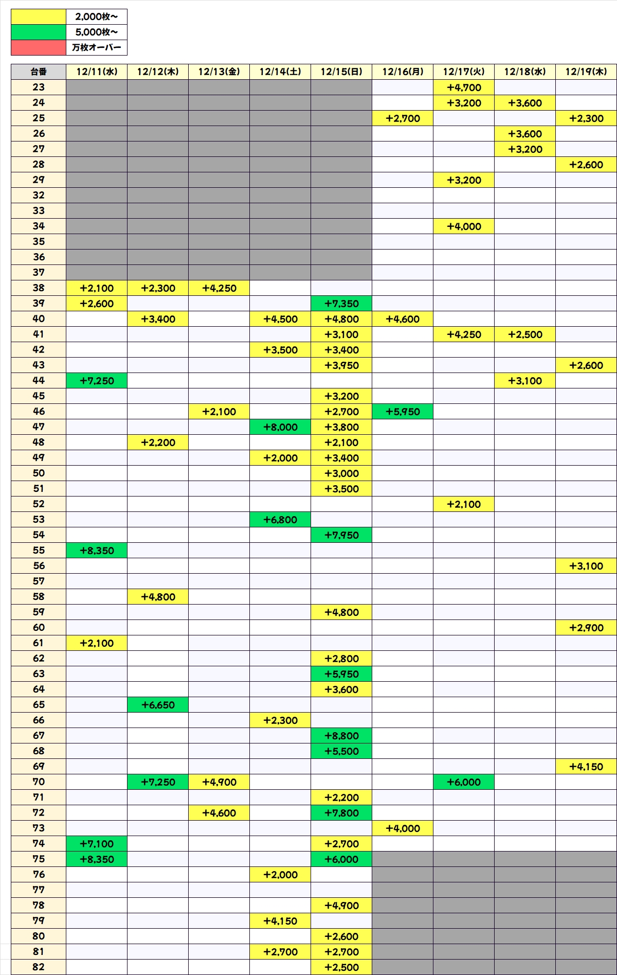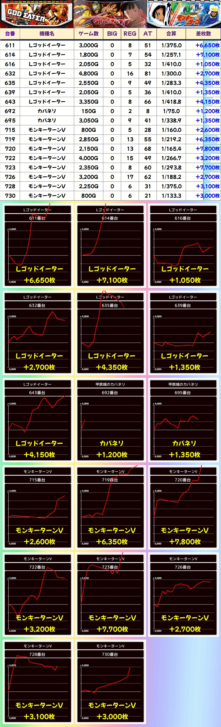 本日は万枚が3台出現しており、5000枚オーバーも17台アリ!