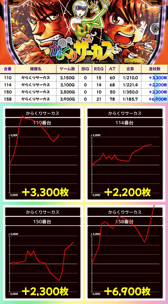 「からくりサーカス」は+6900枚を筆頭に+2000枚以上の台が複数出現!