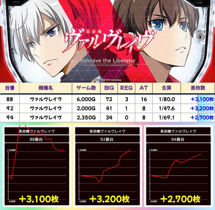 「ヴァルヴレイヴ」からも+3000枚オーバーなどの優秀台を複数確認!