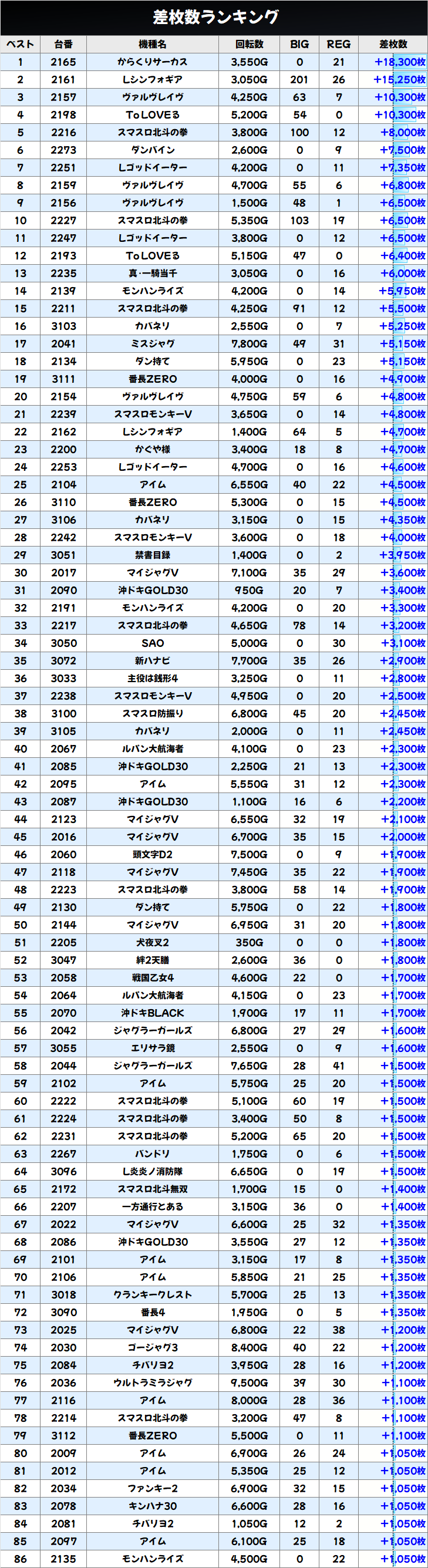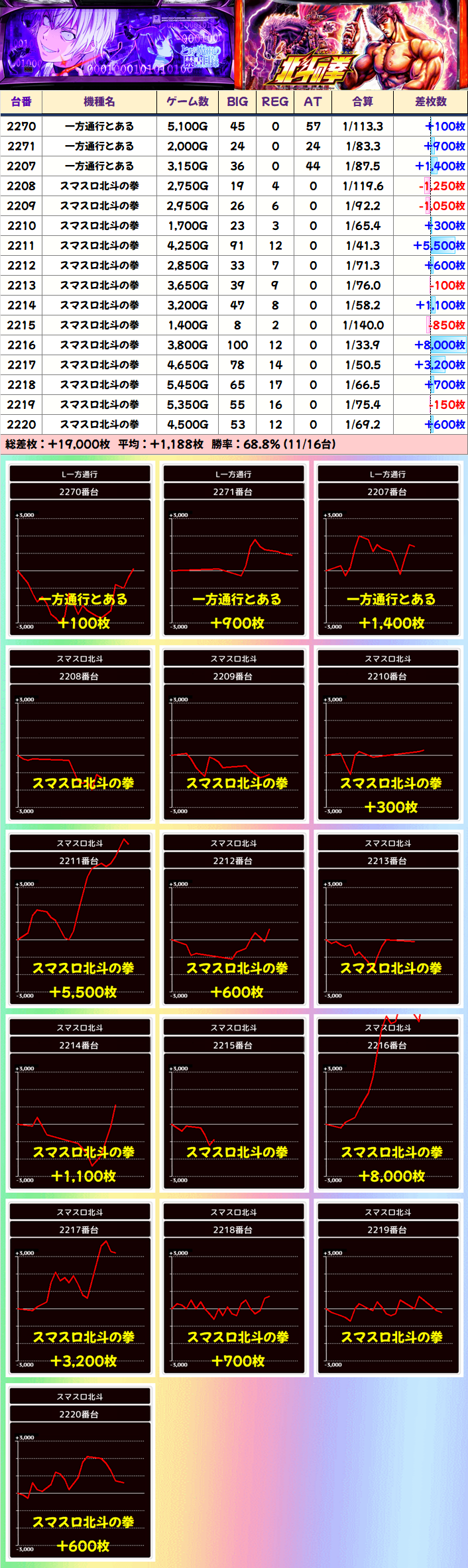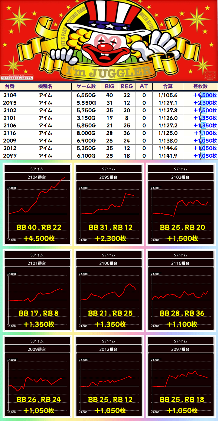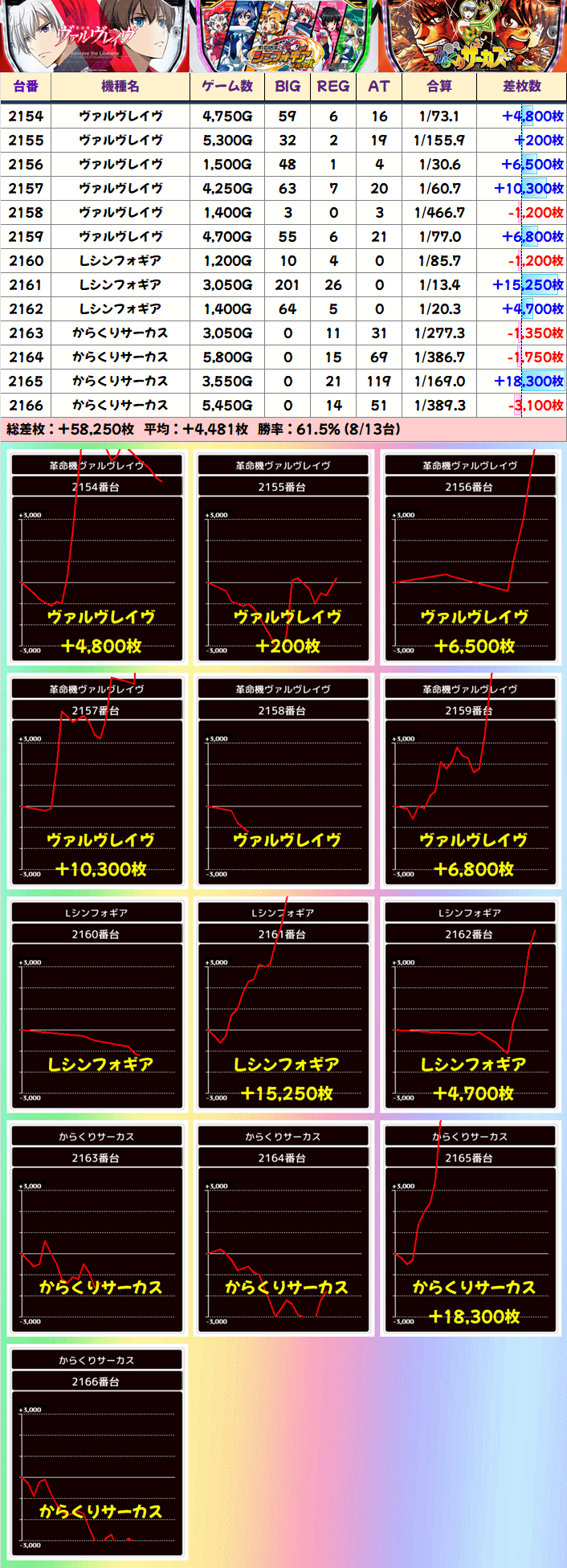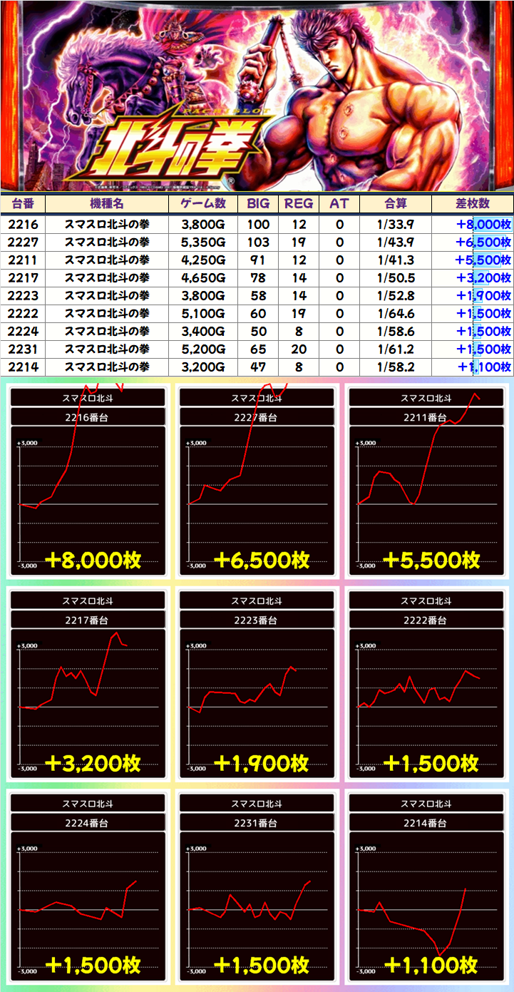 +2900枚を筆頭に全台プラスを達成。
