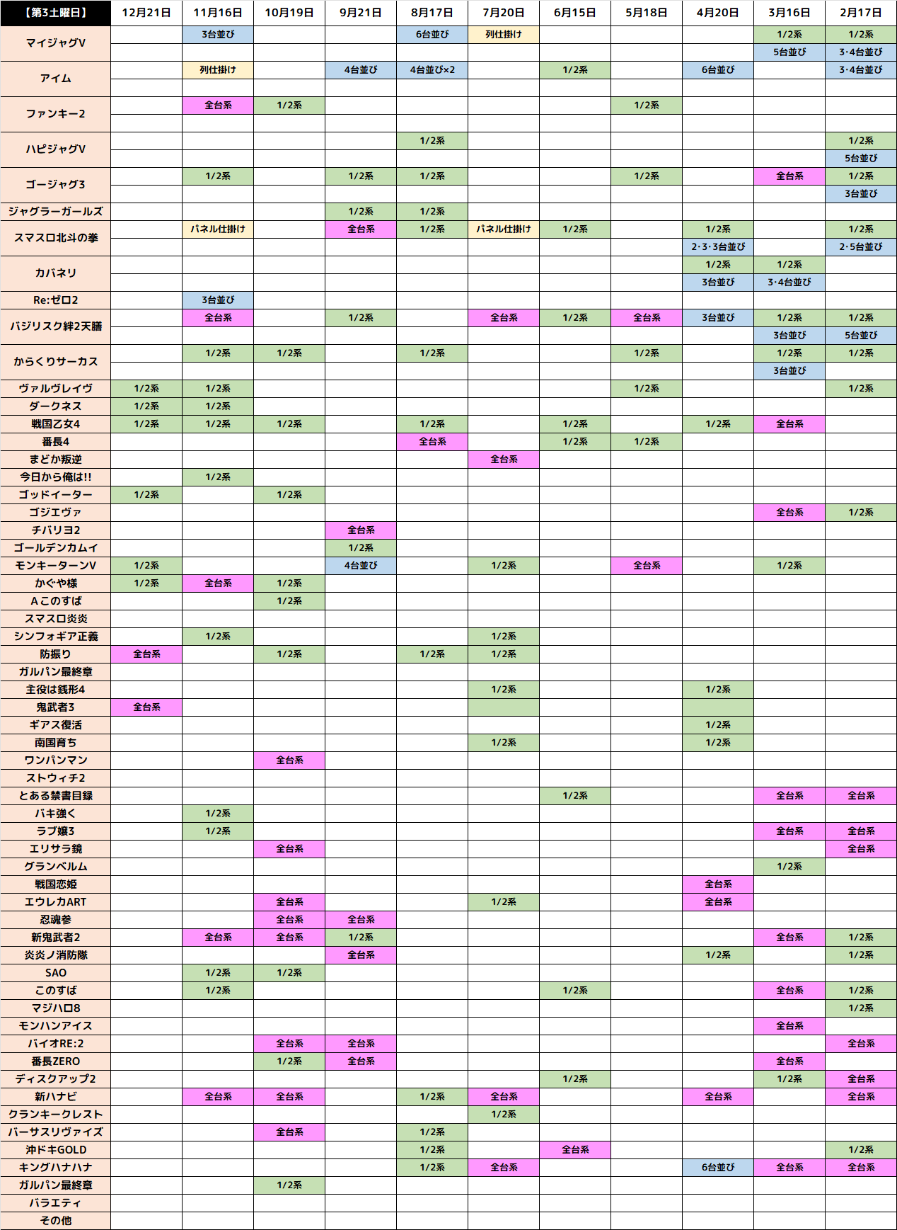 📝第3土曜日の傾向📝