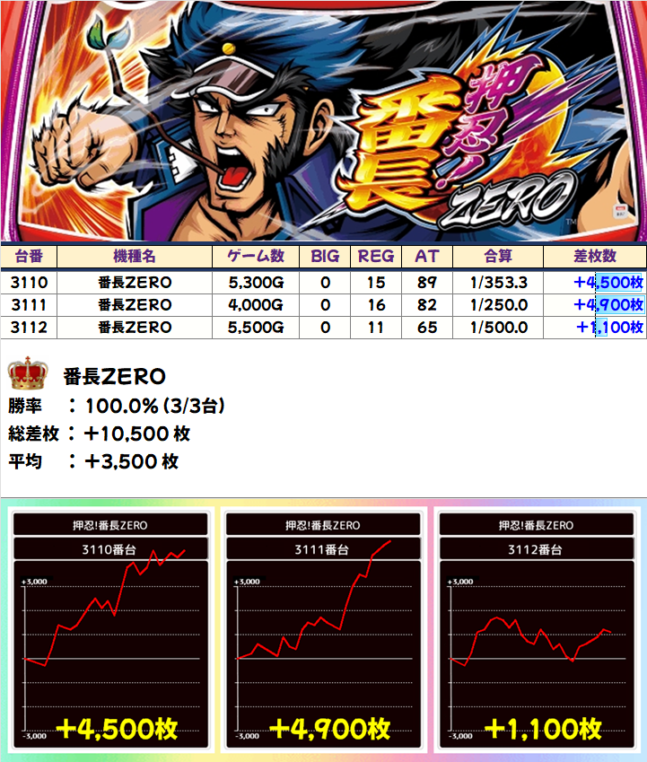番長ZERO(3/3台+)⏩Ave+3,500枚