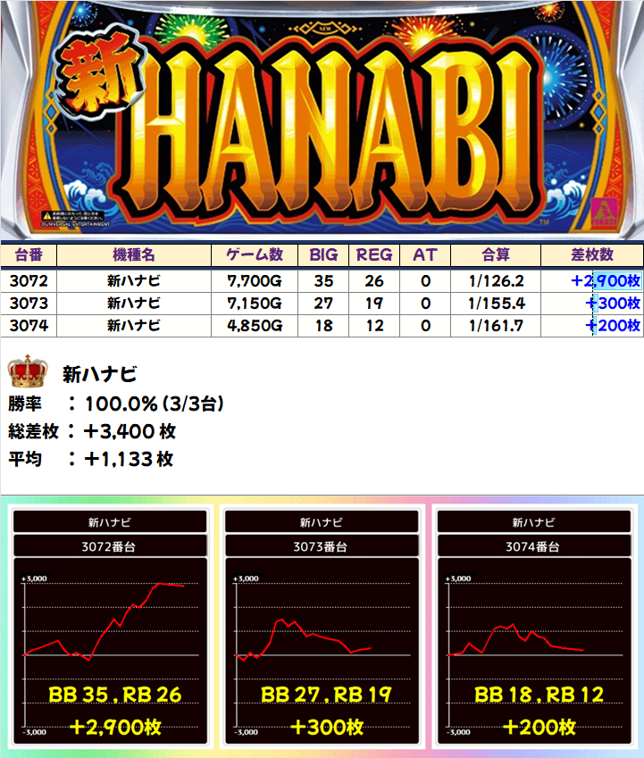 新ハナビ(3/3台+)⏩Ave+1,133枚