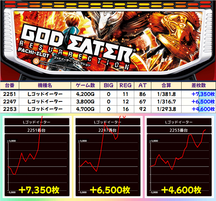 出玉面も2台が+4000枚以上で平均+3500枚と文句ナシの好結果!