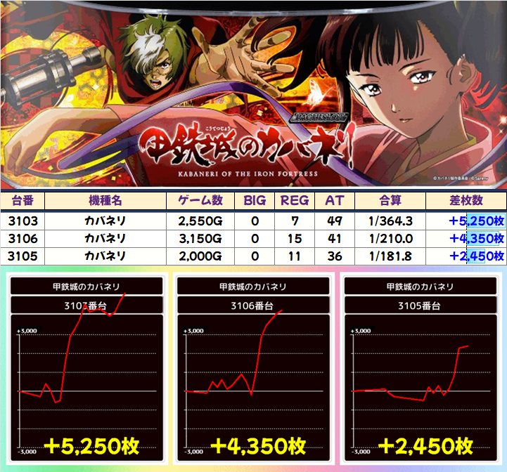 カバネリの+5250枚、アイムの∔4500枚が特に目立っていました!