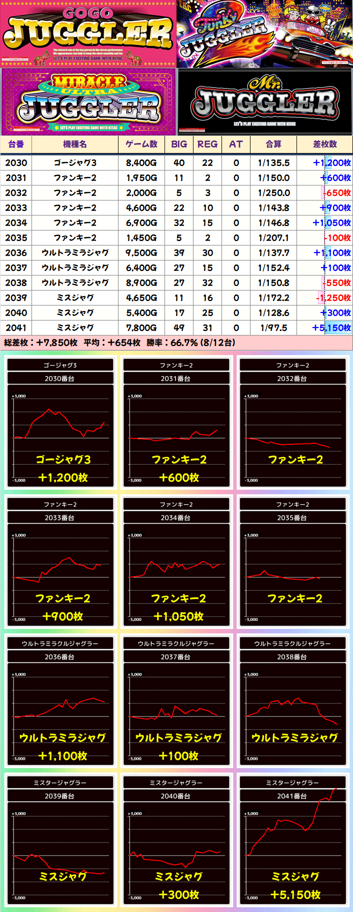 ジャグ4機種またぎ(2030-2041)⏩Ave+654枚