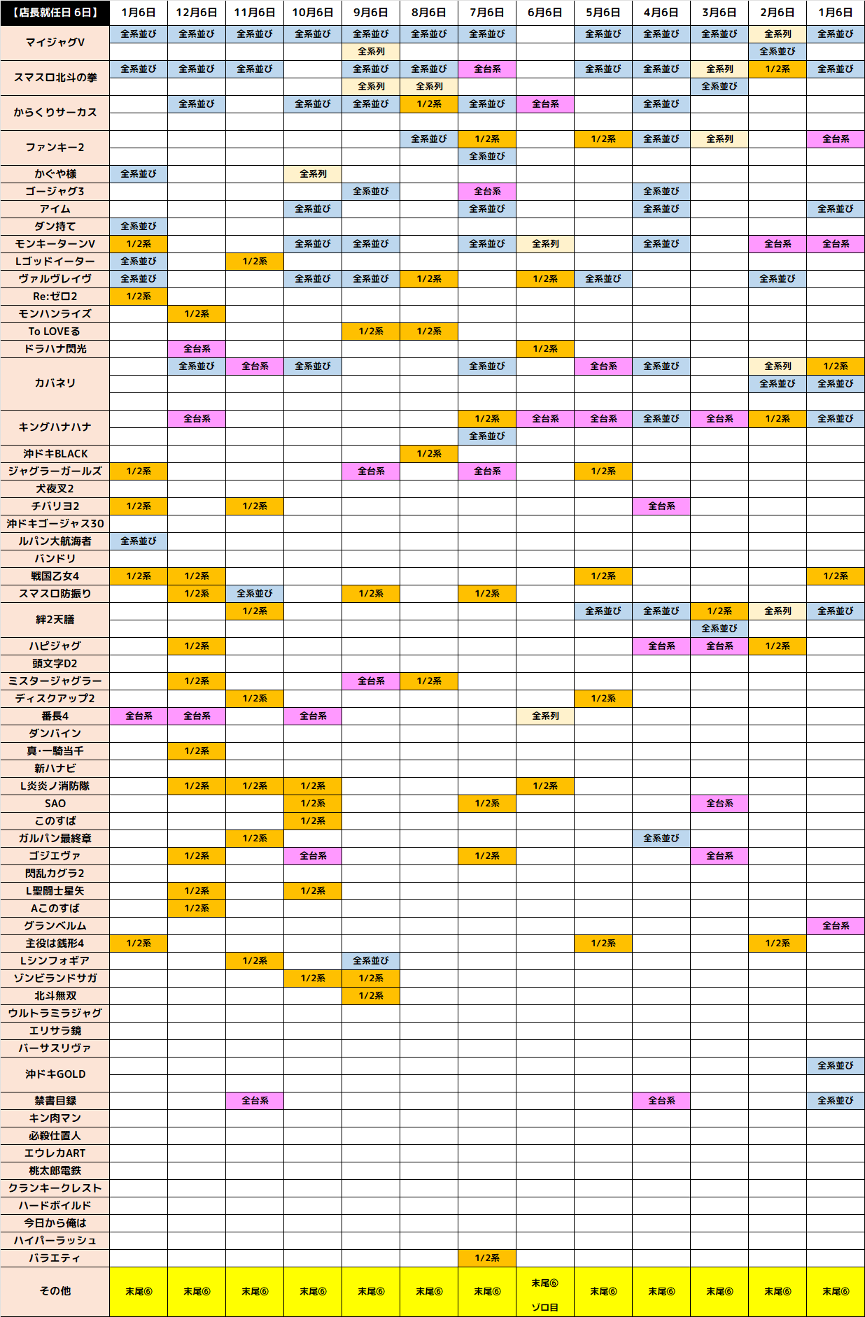 ⑥の日恒例の末尾の仕掛けや⑥に纏わる仕掛けにも期待できる✨直近の店長就任日の結果✨