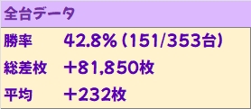 総差枚:+193,700枚 平均差枚:+549枚