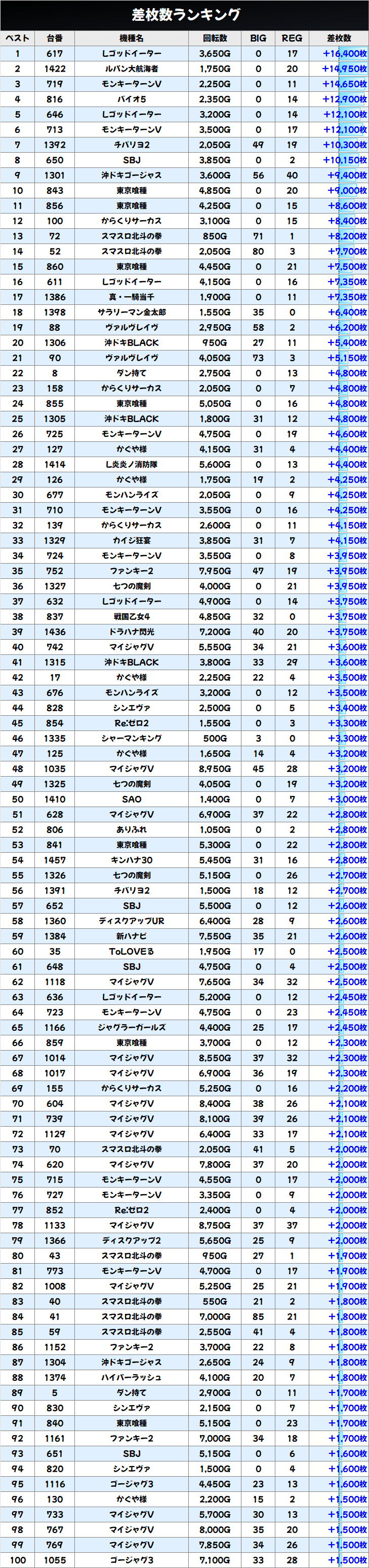 各機種の優秀台をピックアップしていきますので、データをチェックしてみましょう!