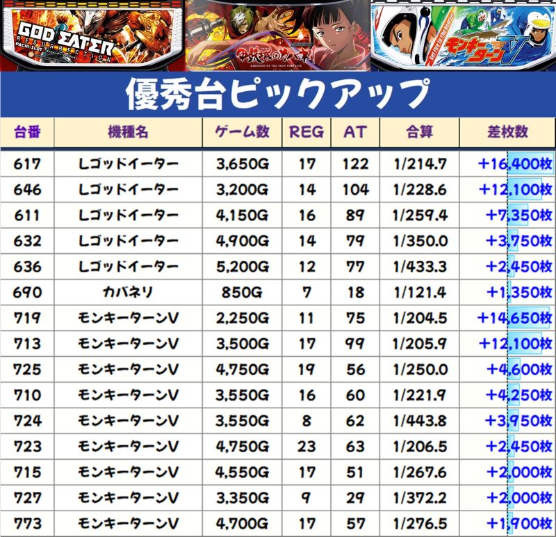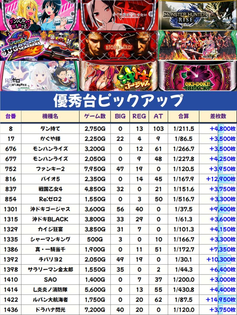 それぞれの優秀台をピックアップしますので、データをチェックして明日以降の参考にしてください!
