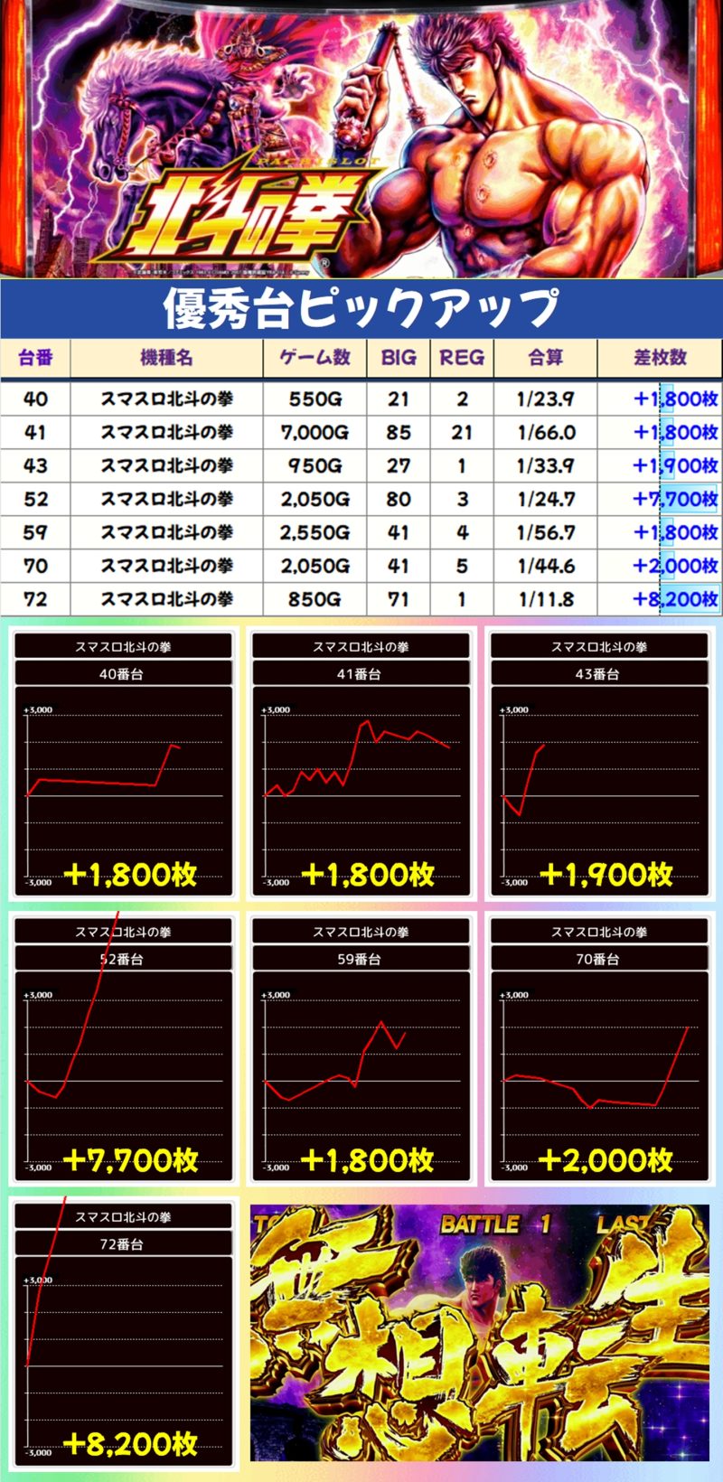 スマスロ北斗の拳からは+8200枚や+7700枚の爆裂を確認!