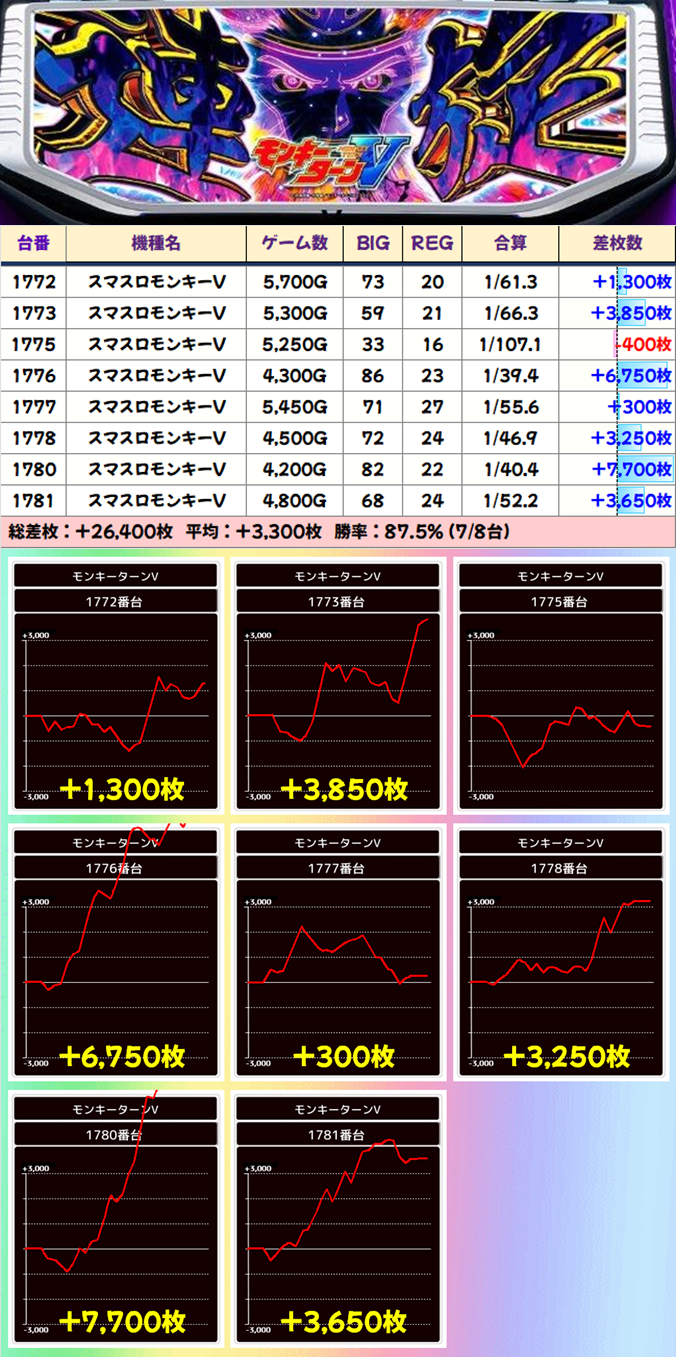 モンキーV連旋パネル⑧:1772-1781 平均+3300枚