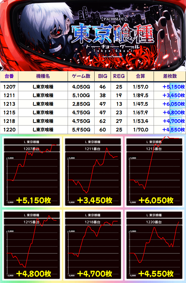 増台されたモンキーVの名前が目立ちますが、同様に多いのが「東京喰種」です。5台も入ってきているので、かなりのポテンシャルがあります。