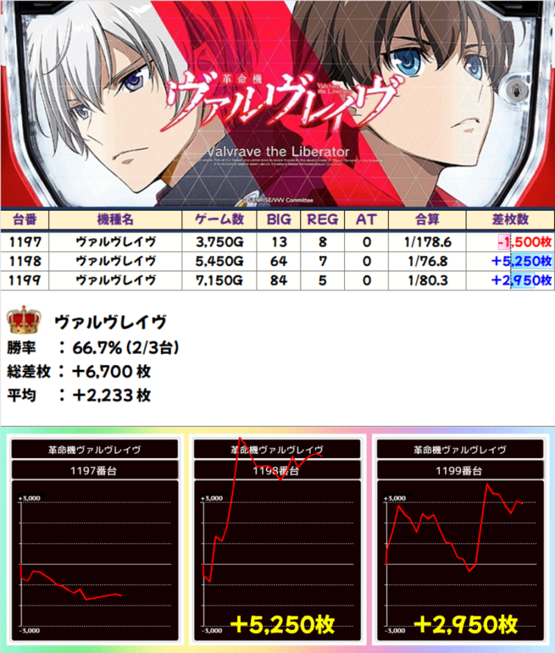【全台系濃厚】ヴァルヴレイヴ(2/3台)☆平均差枚+2233枚☆