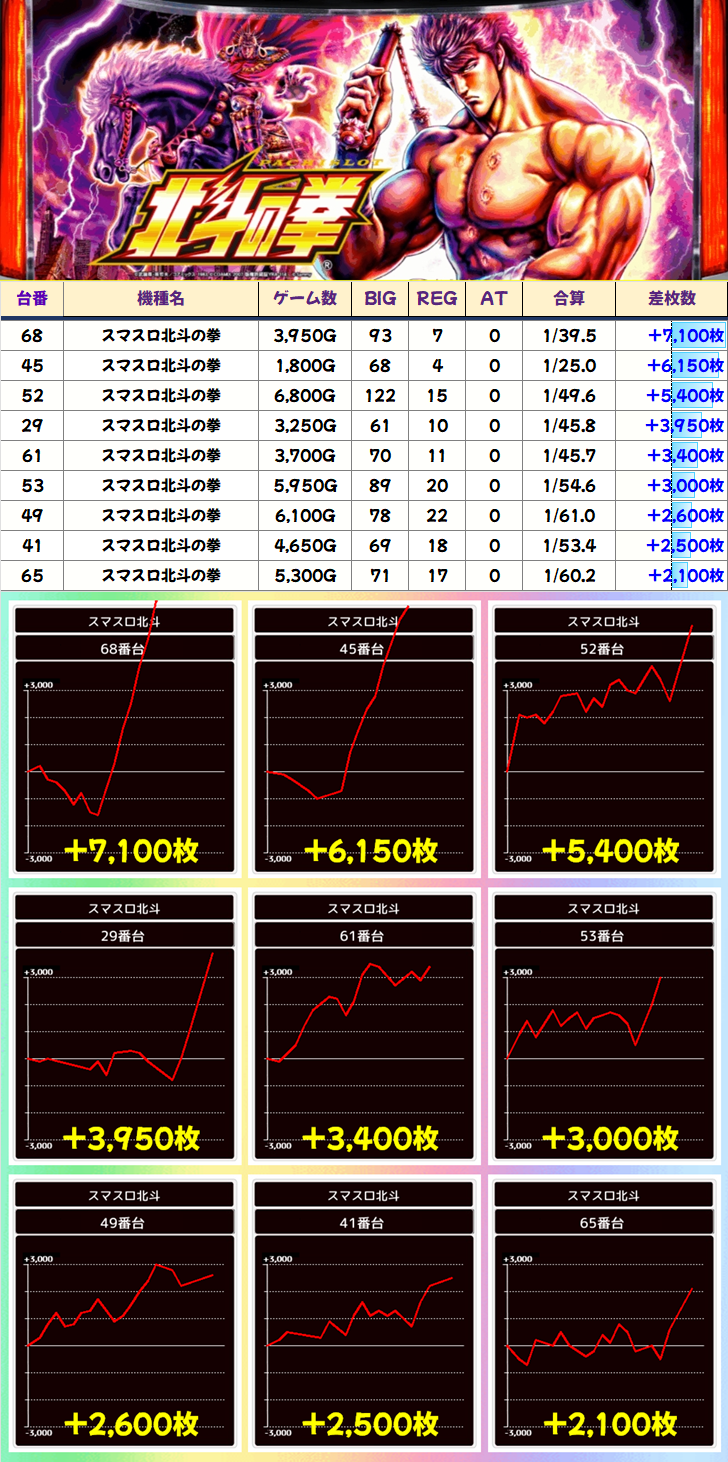 スマスロ北斗からは5~7000枚超の爆裂台が複数アリ!