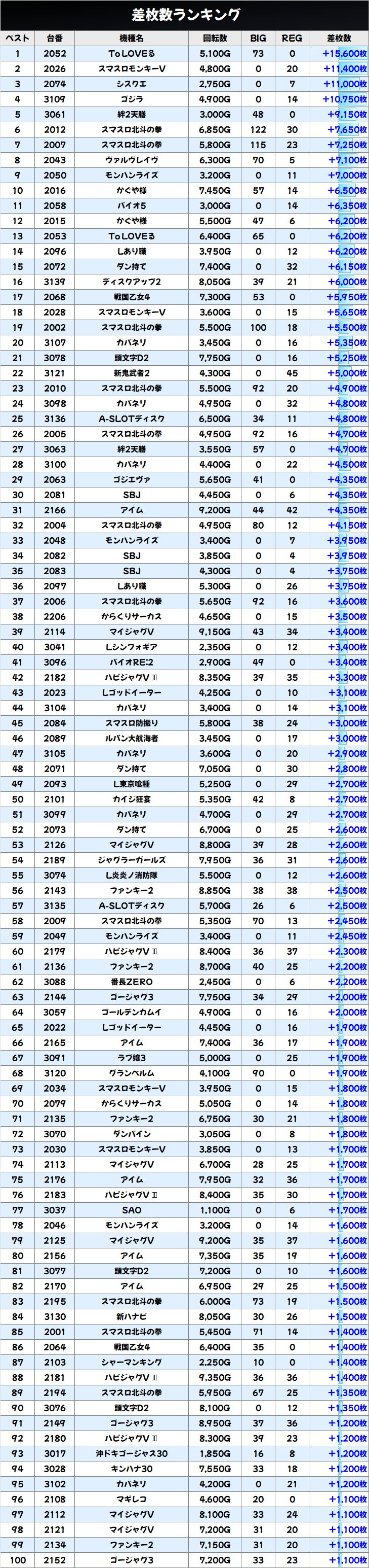 「Lあり職」は+6200枚を筆頭に全台大幅なプラス、「SBJ」は4台中3台が++4000枚クラスと優秀台が続々!