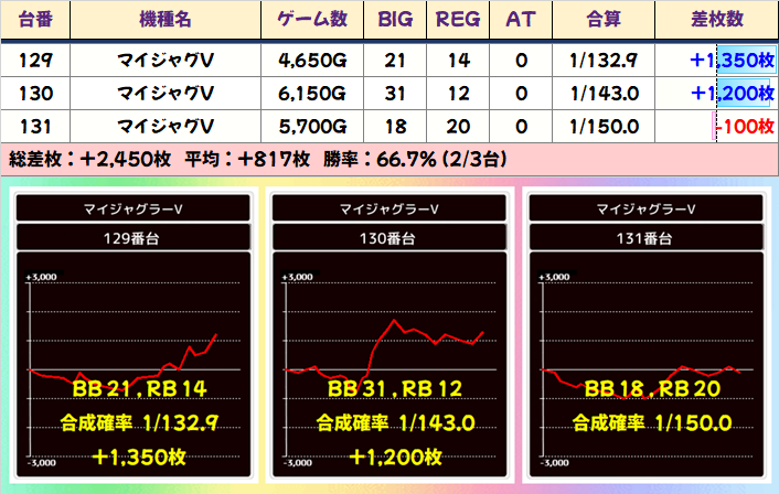 スマスロから6.5号機、沖スロまであらゆるところにお宝台がありました。5のつく日はジャグラーシリーズだけではないことがハッキリ分かりましたので、次回からの立ち回りの参考にしていきたいところです。
