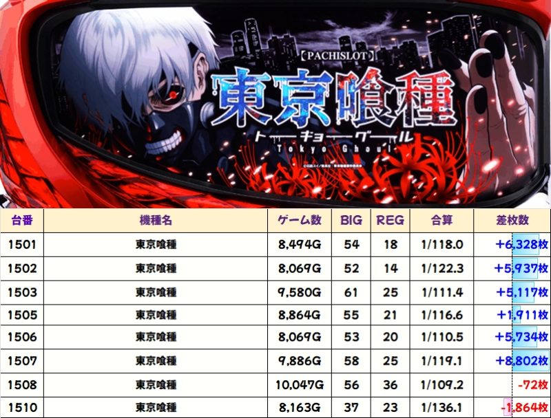 【全台系濃厚】東京喰種等(8台)|平均:+3986.6枚