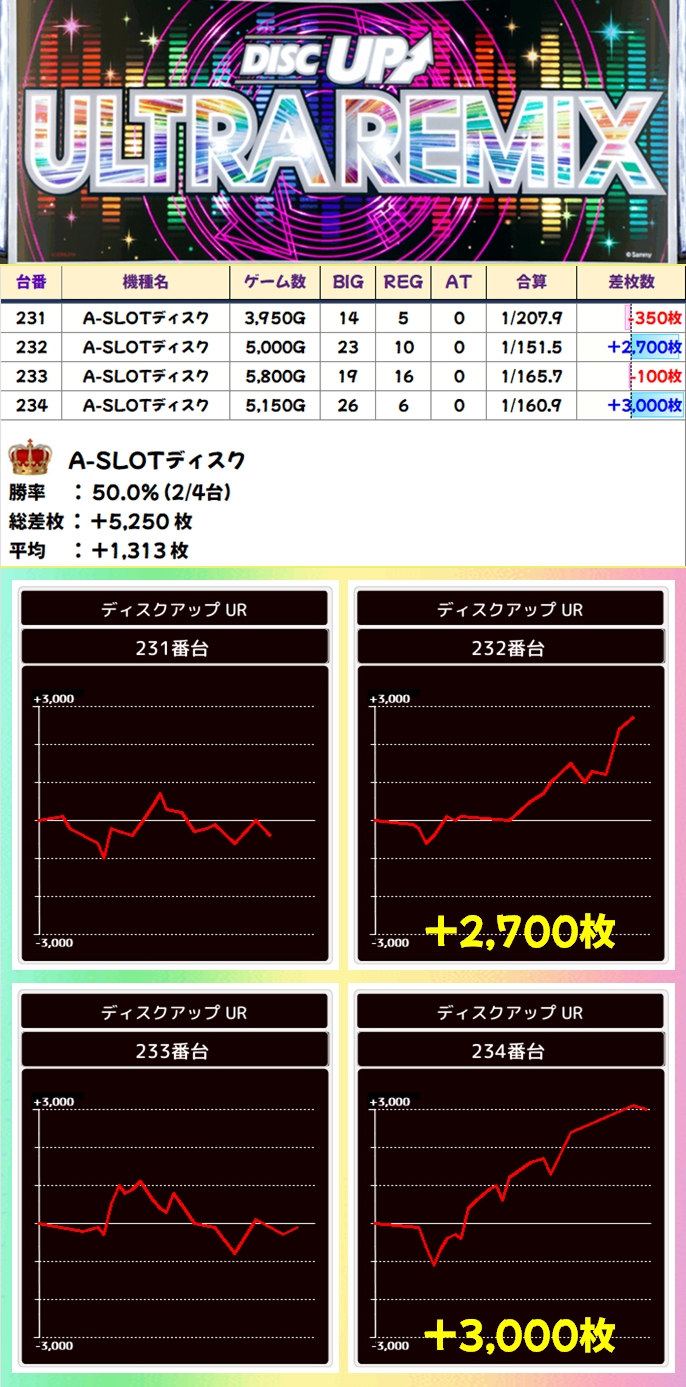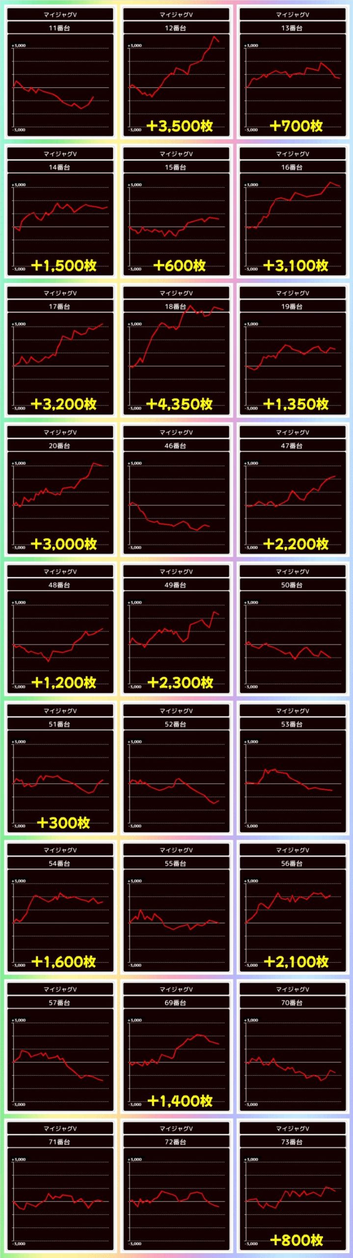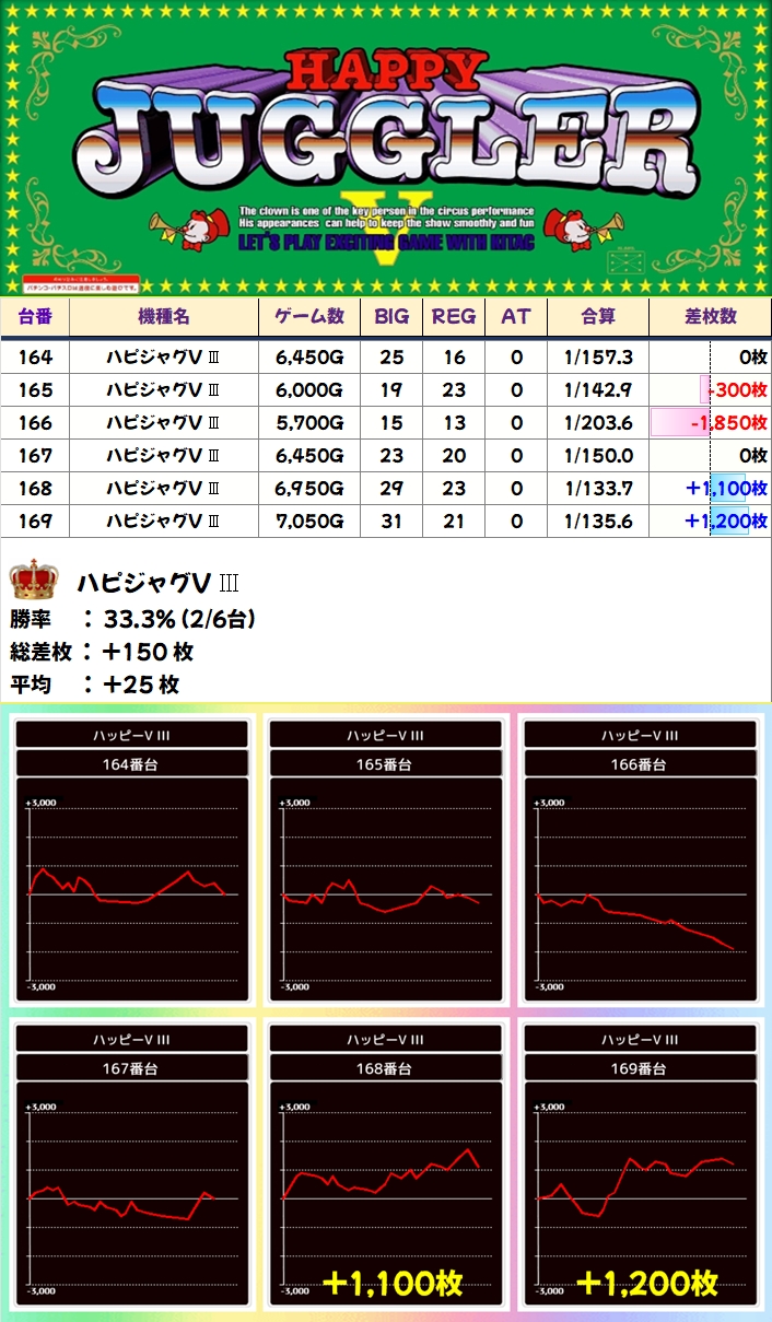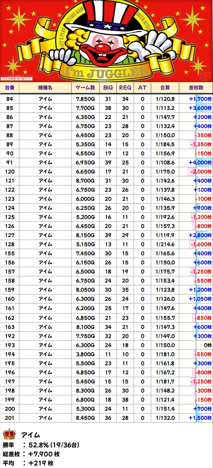 今回もこれまでの傾向に沿って、ジャグや毎日系、ノーマルなどから強烈仕掛けを確認!パチスロだけで勝率約50%、台平均は450枚超の超優秀成績でした。