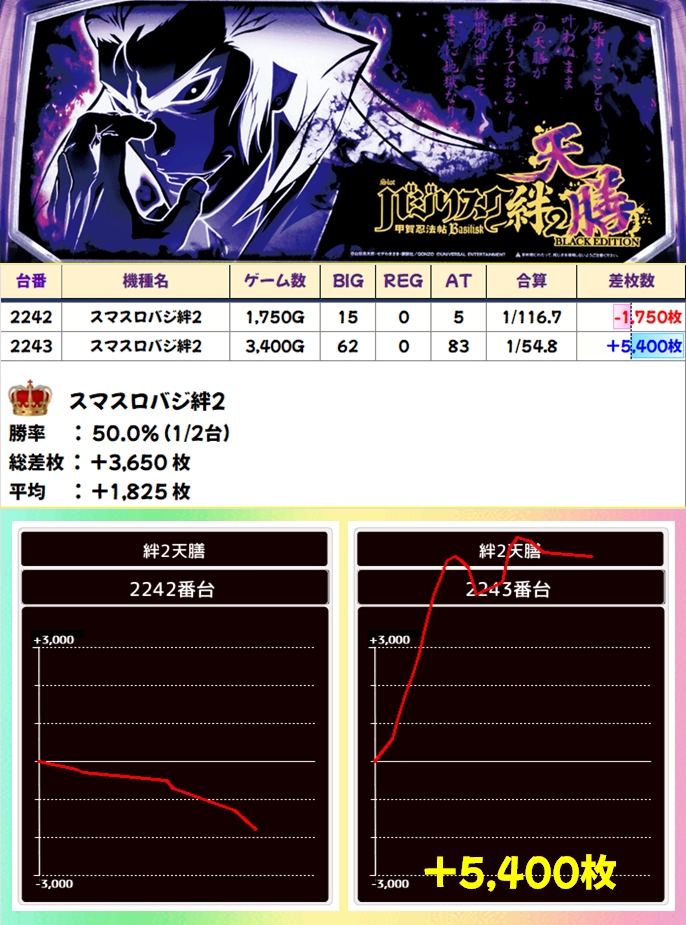 🎖️スマスロバジ絆2(1/2台+)⏩Ave+1,825枚