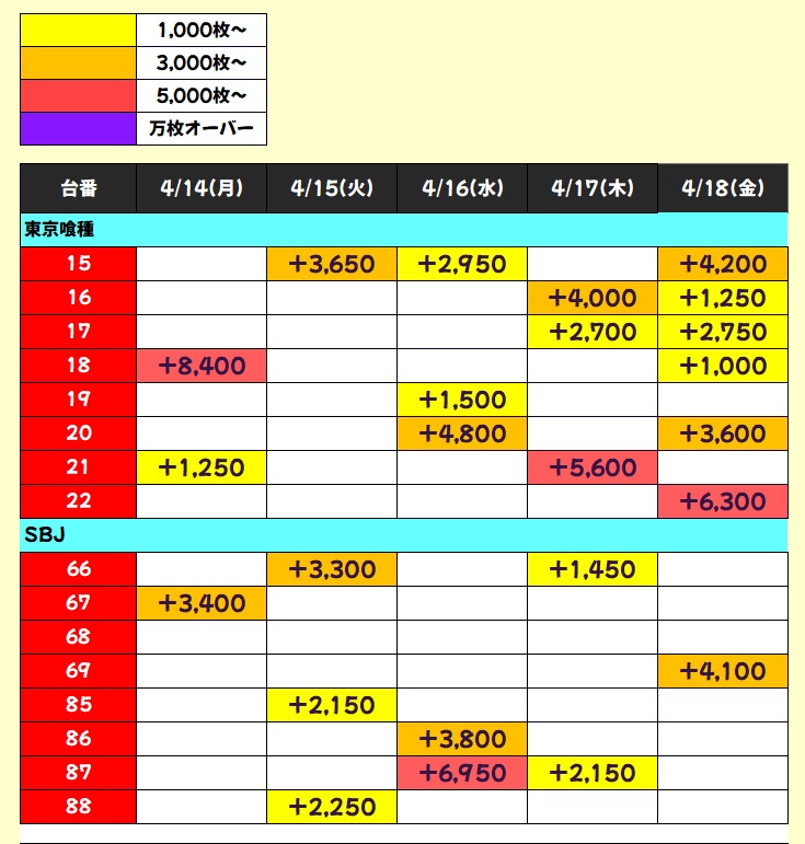 もう一つの推すすめの【SBJ】からも+4000枚オーバー台アリと、どちらの機種からも優秀台は確実にありました!推すすめも残すトコロあと2日だけに過去結果を見て狙い台を絞り込もう!