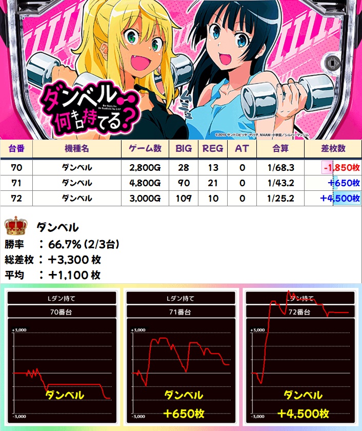そして【Lシンエヴァ】【L炎炎ノ消防隊】【ダンベル】も高配分機種だったと予想!こちらの3機種は平均も優秀でしたね!